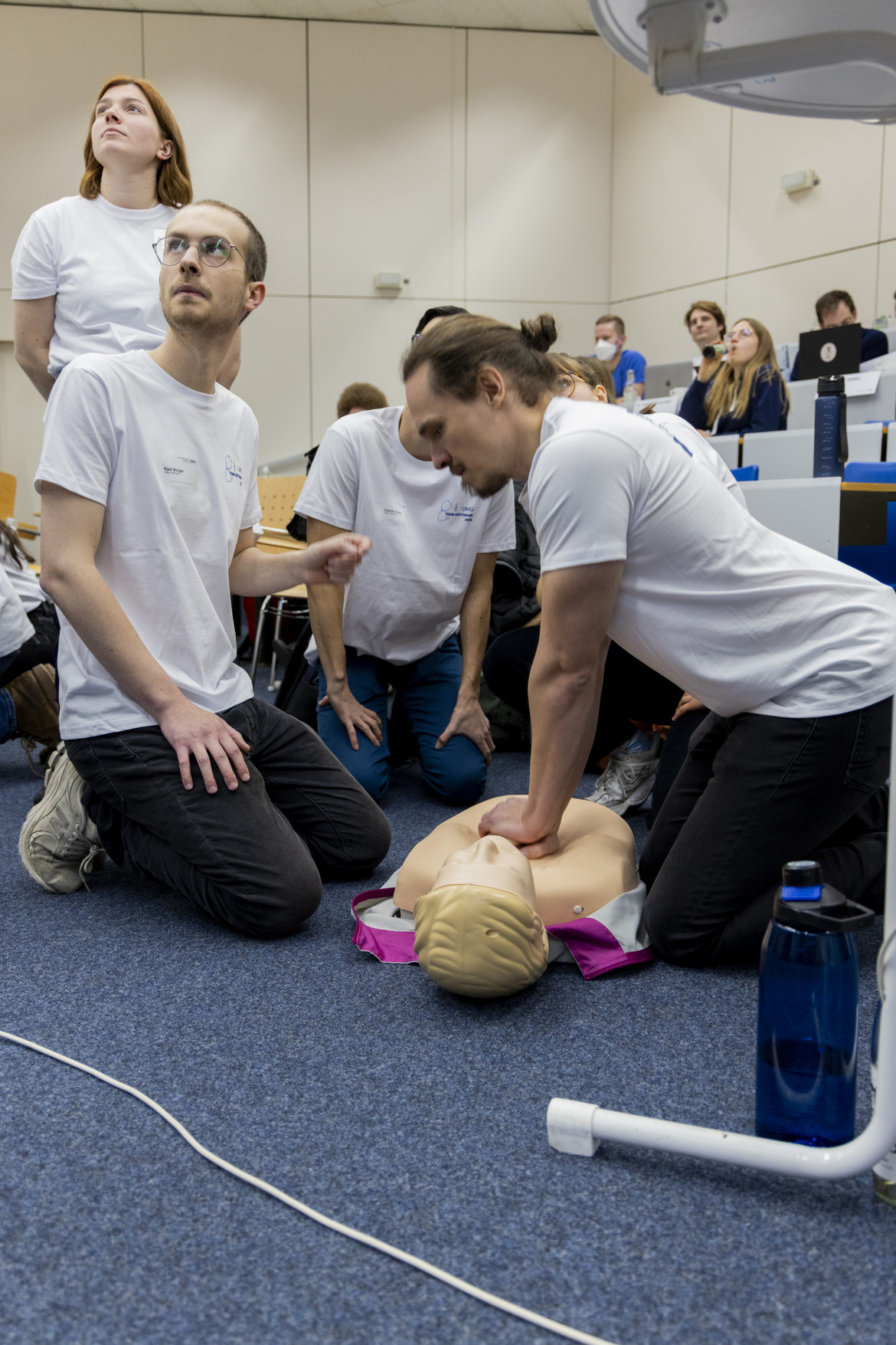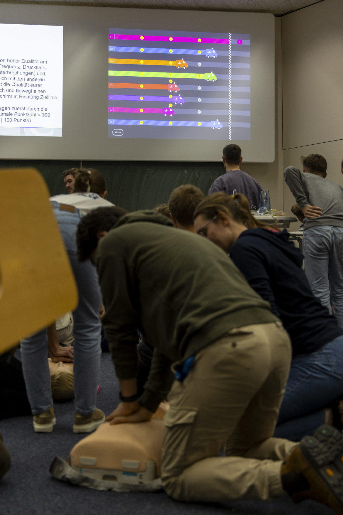 Auch andere Aufgaben stellten die Teilnehmenden vor Herausforderungen: In der Fallvignetten-Runde konnten diagnostische Verfahren angefordert werden, um die Lösung kniffliger Fälle zu erarbeiten. Hinzu kamen praktische Übungen wie die Intubation am Modell und die Reanimation im „CPR Race“, die von Ingmar Finkenzellen aus der Anästhesiologie der UMG organisiert und durchgeführt wurden.